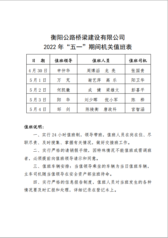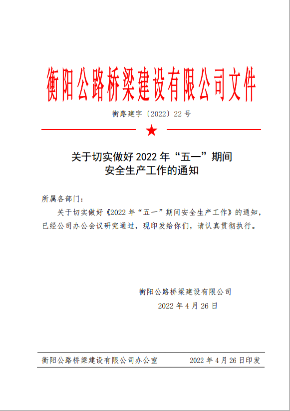 2022年04月27日 15:43 來源:衡陽公路橋梁建設有限公司 辦公室